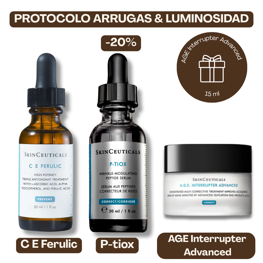 El Protocolo Arrugas y Luminosidad de SkinCeuticals es una rutina profesional diseñada para reducir líneas de expresión, mejorar la firmeza y devolver el brillo saludable a la piel.