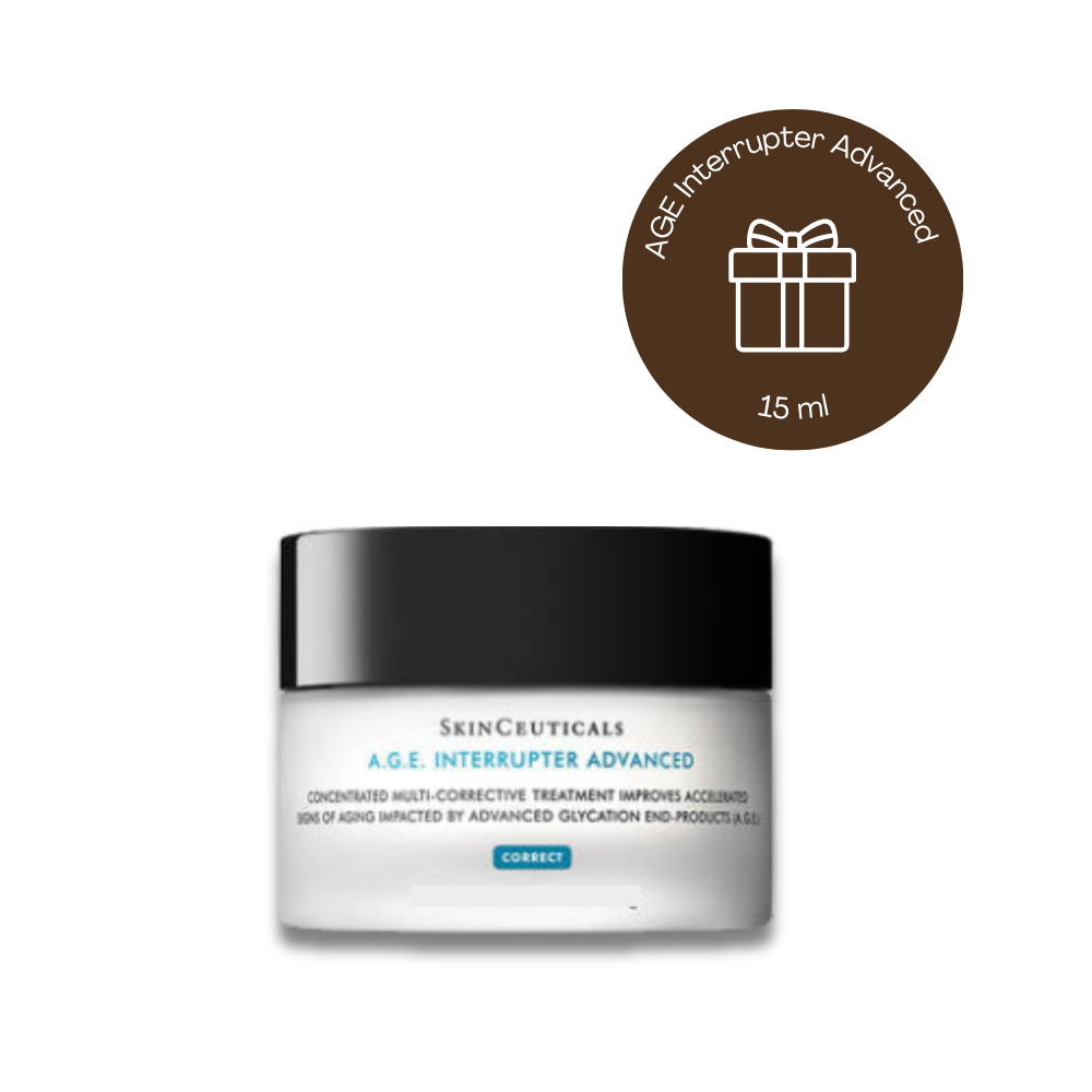 Incluye una minitalla de AGE Interrupter Advanced, crema antiedad que combate la glicación avanzada y mejora la densidad cutánea. Ideal para completar la rutina o llevar de viaje.